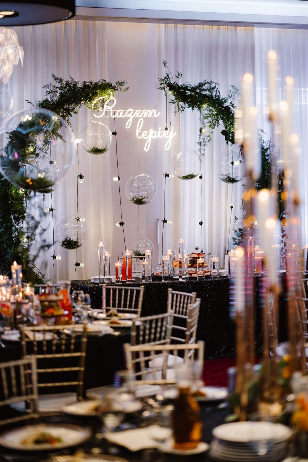 Goście będą mieli okazję zasiąść przy okrągłych stołach, które zostaną pięknie udekorowane i przykryte zdobionymi obrusami. Ta designerska sala emanować będzie wyjątkowym klimatem, który zachwyci każdego gościa.